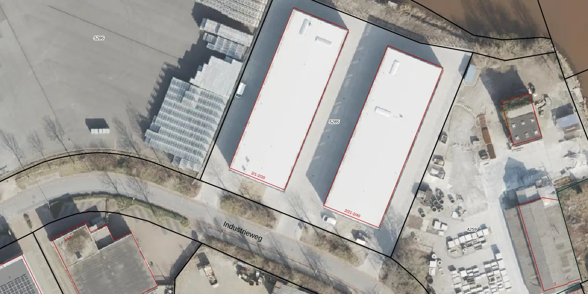 Het perceel waarop Industrieweg 2-19 staat heeft een oppervlakte van 5020 m². Dit is een zeer groot perceel. De perceeloppervlakte wordt geregistreerd door het Kadaster. Gedetailleerde informatie over de maten van dit perceel kunt u vinden in het rapport Kadastrale kaart met maatvoering van Industrieweg 2-19.