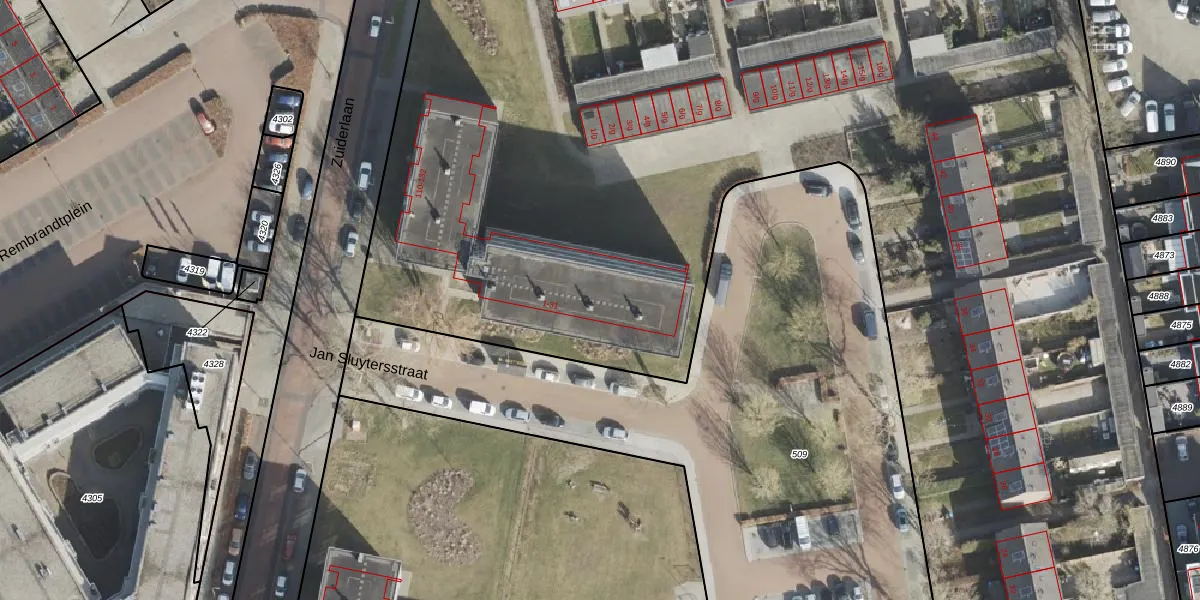 Het perceel waarop Jan Sluytersstraat 13 staat heeft een oppervlakte van 3,4 ha. Dit is een zeer groot perceel. De perceeloppervlakte wordt geregistreerd door het Kadaster. Gedetailleerde informatie over de maten van dit perceel kunt u vinden in het rapport Kadastrale kaart met maatvoering van Jan Sluytersstraat 13.