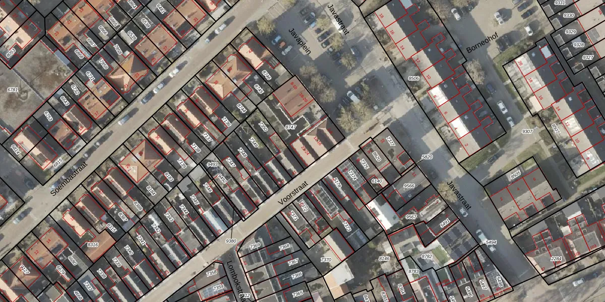 Het perceel waarop Javaplein 12 staat heeft een oppervlakte van 458 m². Dit is een groot perceel. De perceeloppervlakte wordt geregistreerd door het Kadaster. Gedetailleerde informatie over de maten van dit perceel kunt u vinden in het rapport Kadastrale kaart met maatvoering van Javaplein 12.