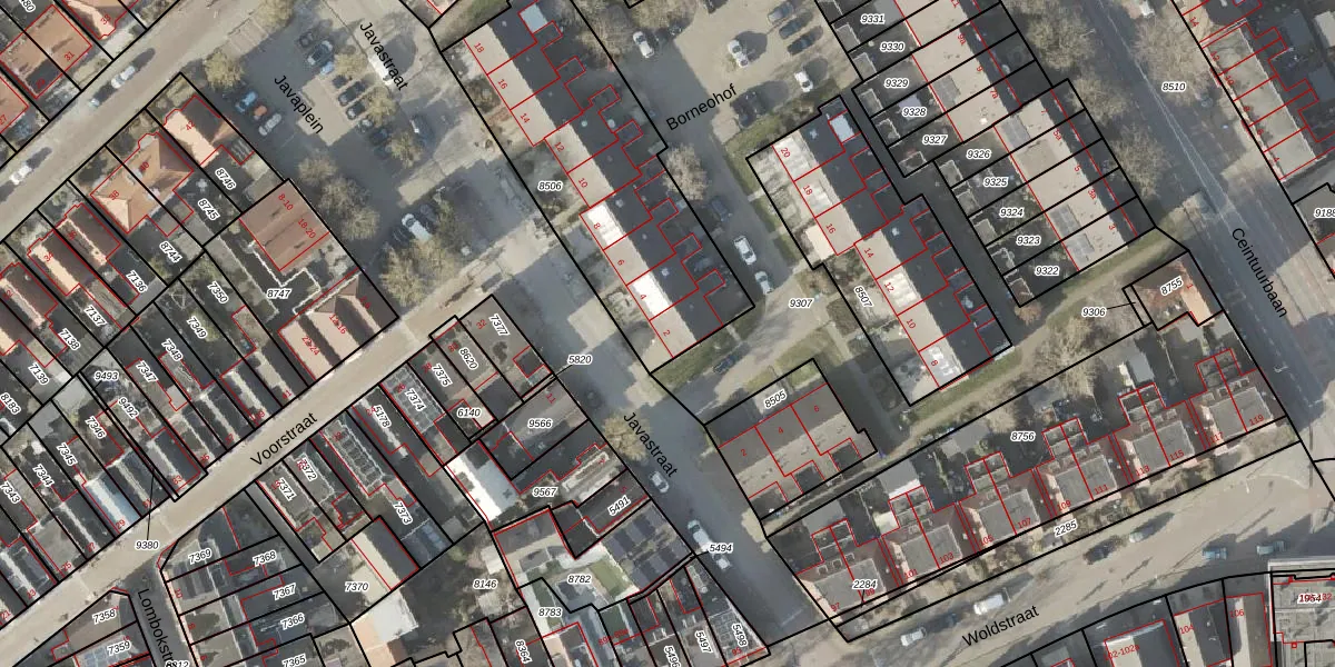 Het perceel waarop Javastraat 2 staat heeft een oppervlakte van 1166 m². Dit is een zeer groot perceel. De perceeloppervlakte wordt geregistreerd door het Kadaster. Gedetailleerde informatie over de maten van dit perceel kunt u vinden in het rapport Kadastrale kaart met maatvoering van Javastraat 2.