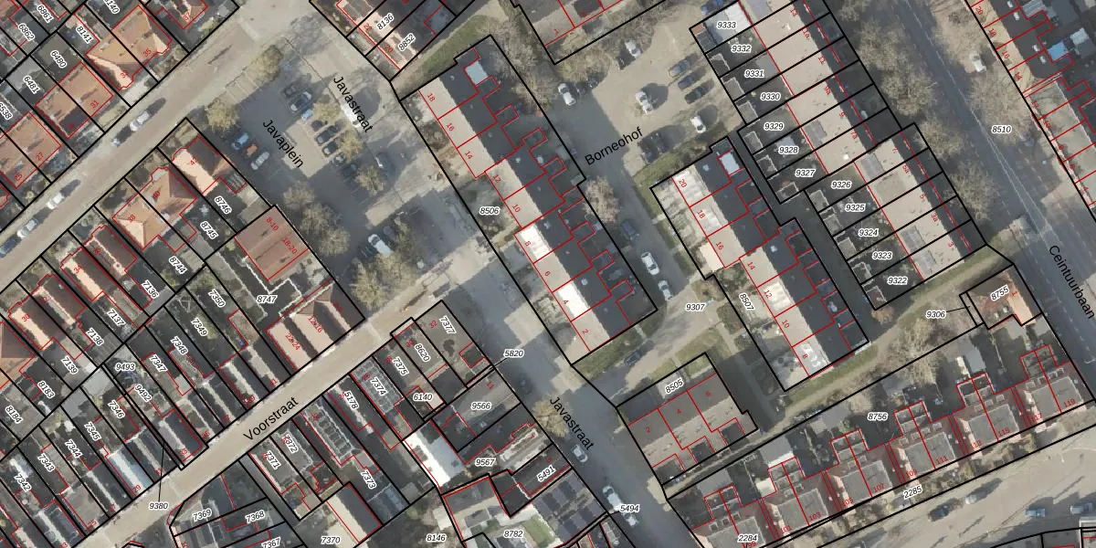 Het perceel waarop Javastraat 6 staat heeft een oppervlakte van 1166 m². Dit is een zeer groot perceel. De perceeloppervlakte wordt geregistreerd door het Kadaster. Gedetailleerde informatie over de maten van dit perceel kunt u vinden in het rapport Kadastrale kaart met maatvoering van Javastraat 6.
