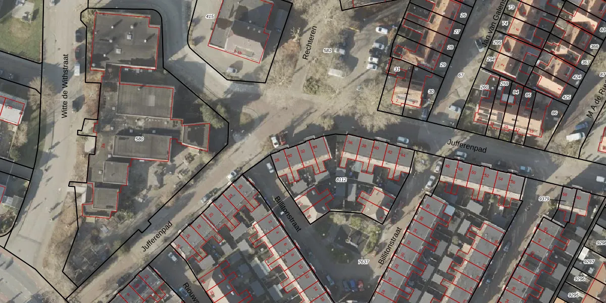 Het perceel waarop Jufferenpad 32 staat heeft een oppervlakte van 966 m². Dit is een groot perceel. De perceeloppervlakte wordt geregistreerd door het Kadaster. Gedetailleerde informatie over de maten van dit perceel kunt u vinden in het rapport Kadastrale kaart met maatvoering van Jufferenpad 32.