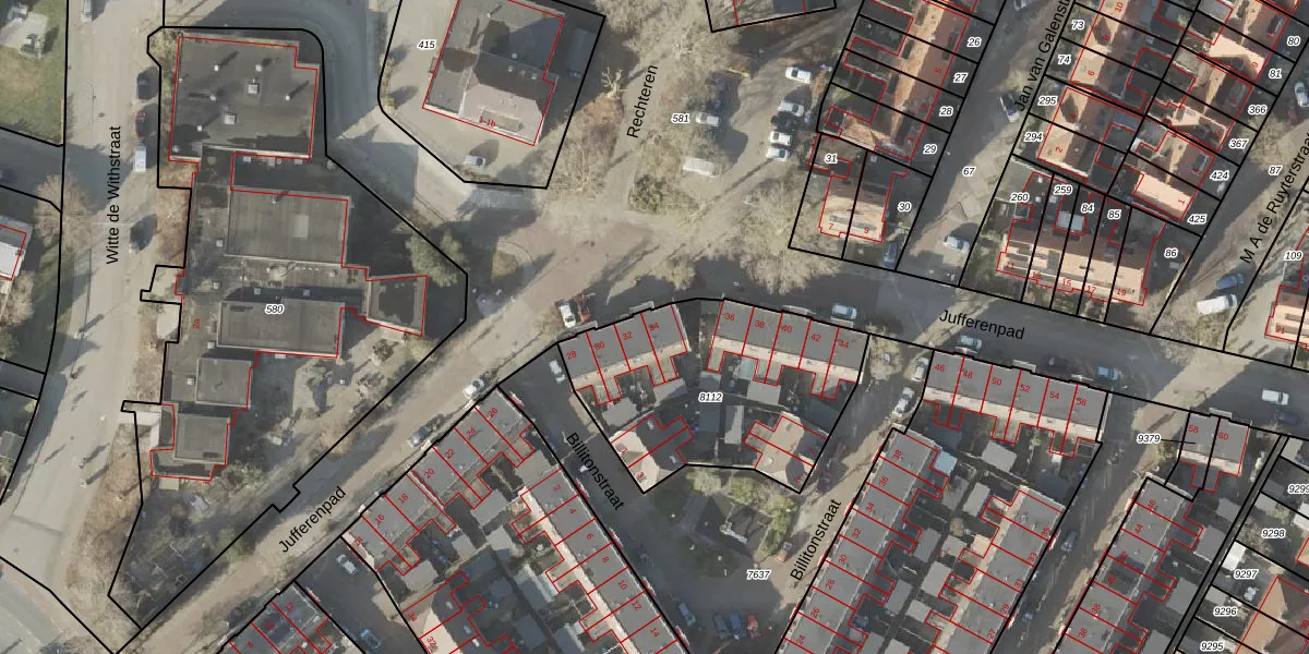 Het perceel waarop Jufferenpad 34 staat heeft een oppervlakte van 966 m². Dit is een groot perceel. De perceeloppervlakte wordt geregistreerd door het Kadaster. Gedetailleerde informatie over de maten van dit perceel kunt u vinden in het rapport Kadastrale kaart met maatvoering van Jufferenpad 34.