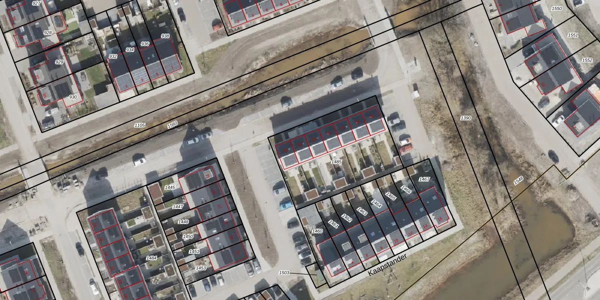 Het perceel waarop Kaapstander 20 staat heeft een oppervlakte van 1000 m². Dit is een zeer groot perceel. De perceeloppervlakte wordt geregistreerd door het Kadaster. Gedetailleerde informatie over de maten van dit perceel kunt u vinden in het rapport Kadastrale kaart met maatvoering van Kaapstander 20.