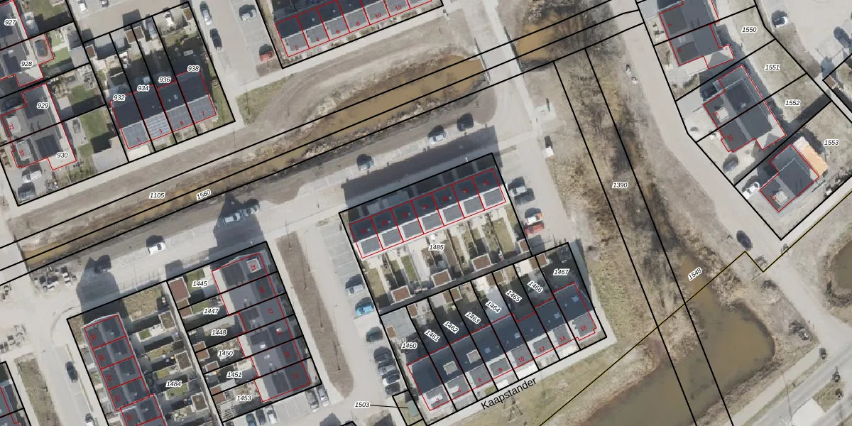Het perceel waarop Kaapstander 24 staat heeft een oppervlakte van 1000 m². Dit is een zeer groot perceel. De perceeloppervlakte wordt geregistreerd door het Kadaster. Gedetailleerde informatie over de maten van dit perceel kunt u vinden in het rapport Kadastrale kaart met maatvoering van Kaapstander 24.