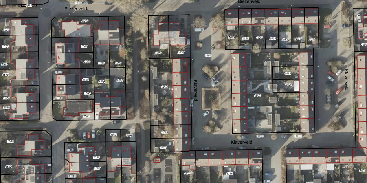 Het perceel waarop Klaverveld 47 staat heeft een oppervlakte van 826 m². Dit is een groot perceel. De perceeloppervlakte wordt geregistreerd door het Kadaster. Gedetailleerde informatie over de maten van dit perceel kunt u vinden in het rapport Kadastrale kaart met maatvoering van Klaverveld 47.