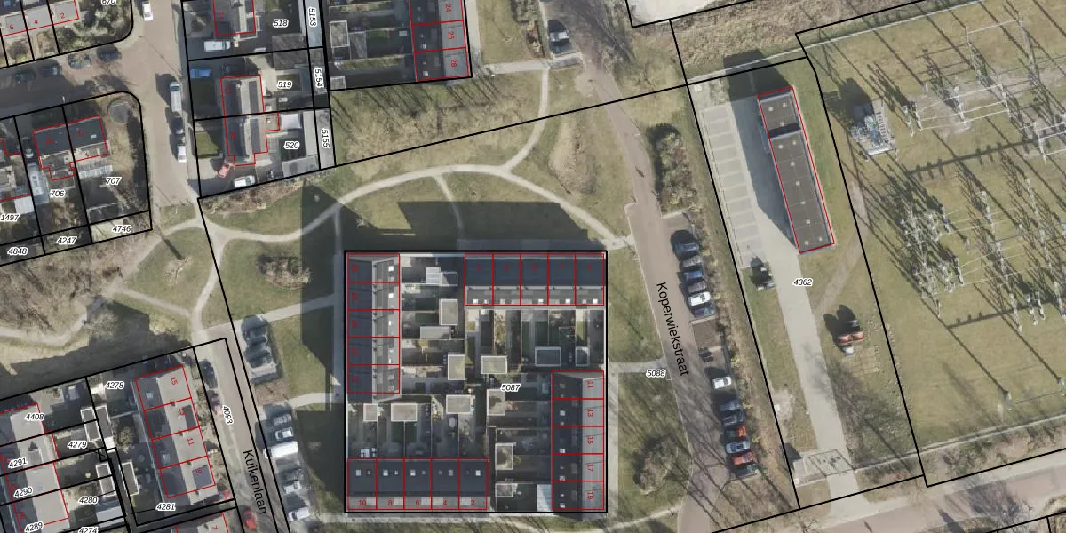Het perceel waarop Koperwiekstraat 5 staat heeft een oppervlakte van 2410 m². Dit is een zeer groot perceel. De perceeloppervlakte wordt geregistreerd door het Kadaster. Gedetailleerde informatie over de maten van dit perceel kunt u vinden in het rapport Kadastrale kaart met maatvoering van Koperwiekstraat 5.