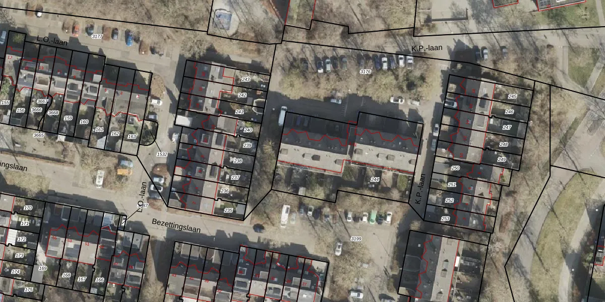 Het perceel waarop K.P.-laan 29 staat heeft een oppervlakte van 1203 m². Dit is een zeer groot perceel. De perceeloppervlakte wordt geregistreerd door het Kadaster. Gedetailleerde informatie over de maten van dit perceel kunt u vinden in het rapport Kadastrale kaart met maatvoering van K.P.-laan 29.