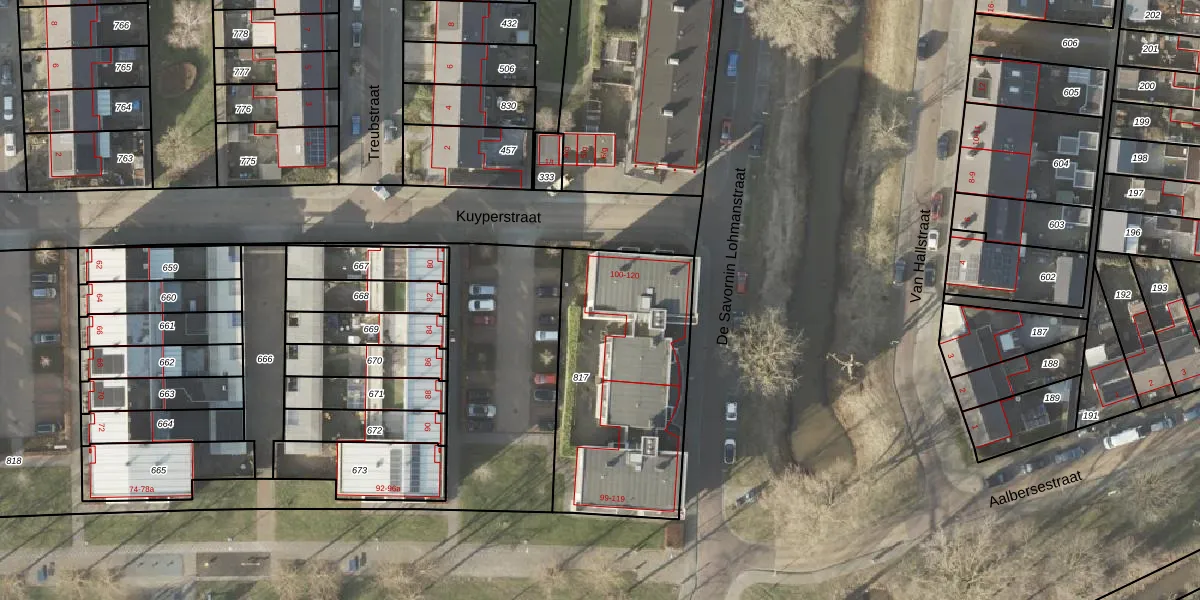 Het perceel waarop Kuyperstraat 120 staat heeft een oppervlakte van 945 m². Dit is een groot perceel. De perceeloppervlakte wordt geregistreerd door het Kadaster. Gedetailleerde informatie over de maten van dit perceel kunt u vinden in het rapport Kadastrale kaart met maatvoering van Kuyperstraat 120.