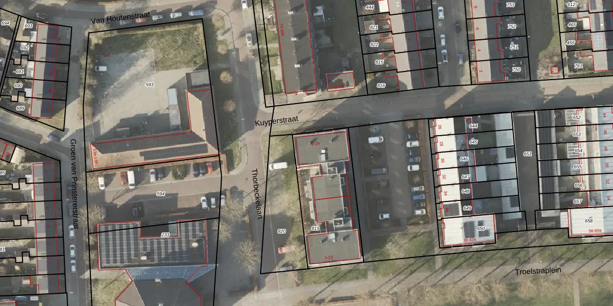 Het perceel waarop Kuyperstraat 18 staat heeft een oppervlakte van 810 m². Dit is een groot perceel. De perceeloppervlakte wordt geregistreerd door het Kadaster. Gedetailleerde informatie over de maten van dit perceel kunt u vinden in het rapport Kadastrale kaart met maatvoering van Kuyperstraat 18.
