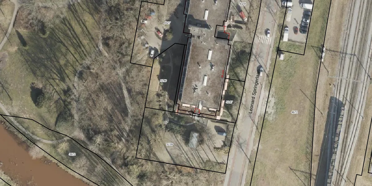 Het perceel waarop Leonard Springerlaan 104 staat heeft een oppervlakte van 2052 m². Dit is een zeer groot perceel. De perceeloppervlakte wordt geregistreerd door het Kadaster. Gedetailleerde informatie over de maten van dit perceel kunt u vinden in het rapport Kadastrale kaart met maatvoering van Leonard Springerlaan 104.