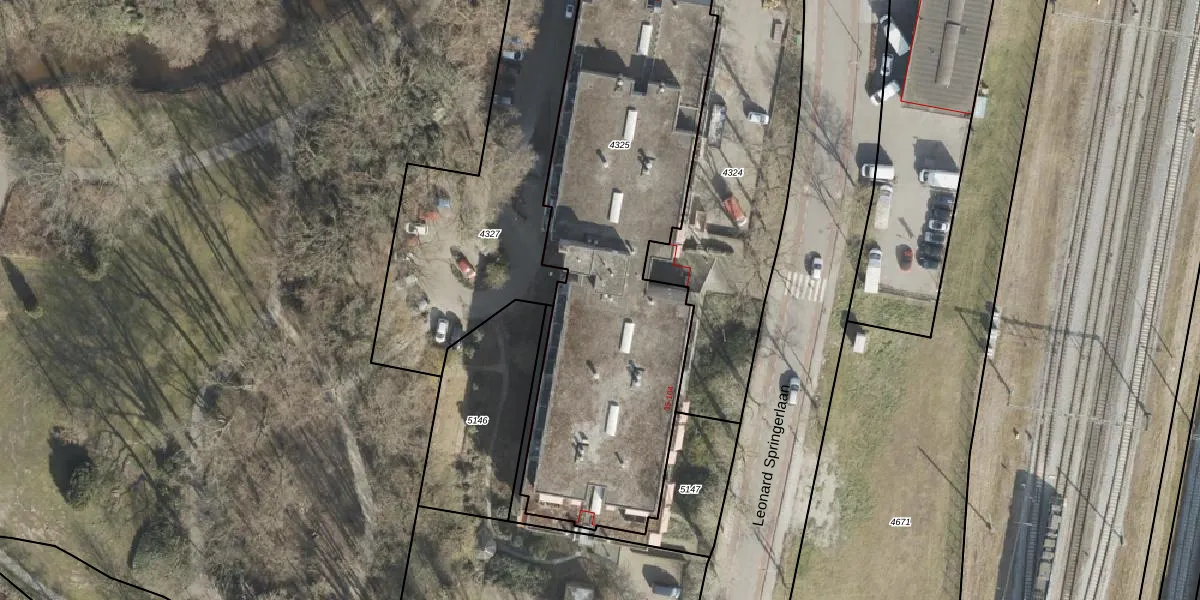 Het perceel waarop Leonard Springerlaan 52 staat heeft een oppervlakte van 2052 m². Dit is een zeer groot perceel. De perceeloppervlakte wordt geregistreerd door het Kadaster. Gedetailleerde informatie over de maten van dit perceel kunt u vinden in het rapport Kadastrale kaart met maatvoering van Leonard Springerlaan 52.