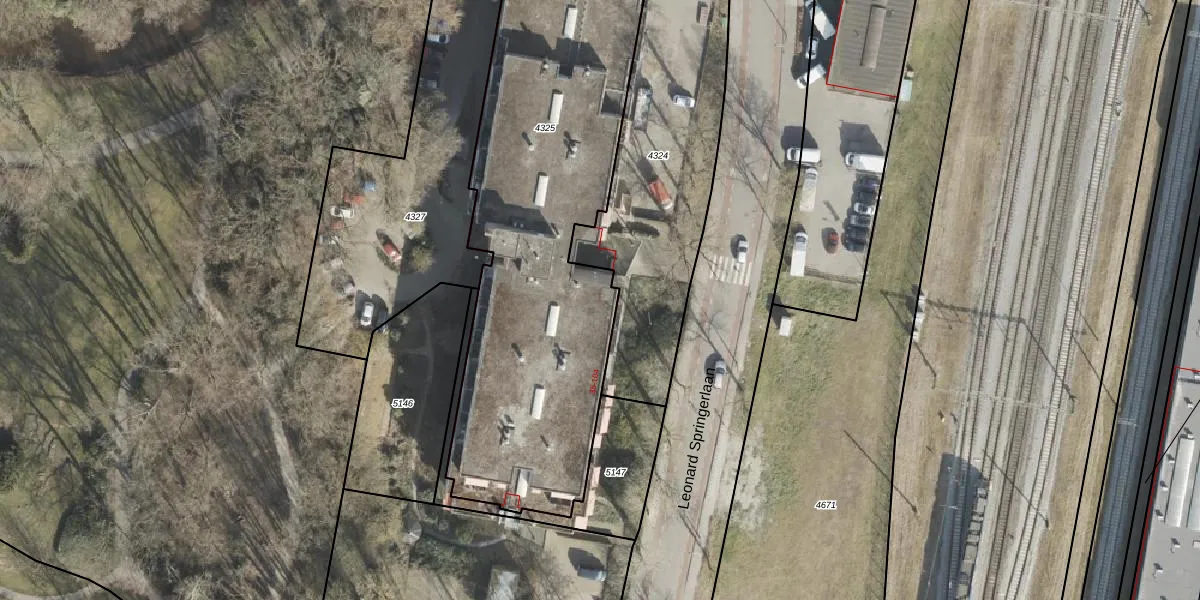 Het perceel waarop Leonard Springerlaan 53 staat heeft een oppervlakte van 2052 m². Dit is een zeer groot perceel. De perceeloppervlakte wordt geregistreerd door het Kadaster. Gedetailleerde informatie over de maten van dit perceel kunt u vinden in het rapport Kadastrale kaart met maatvoering van Leonard Springerlaan 53.