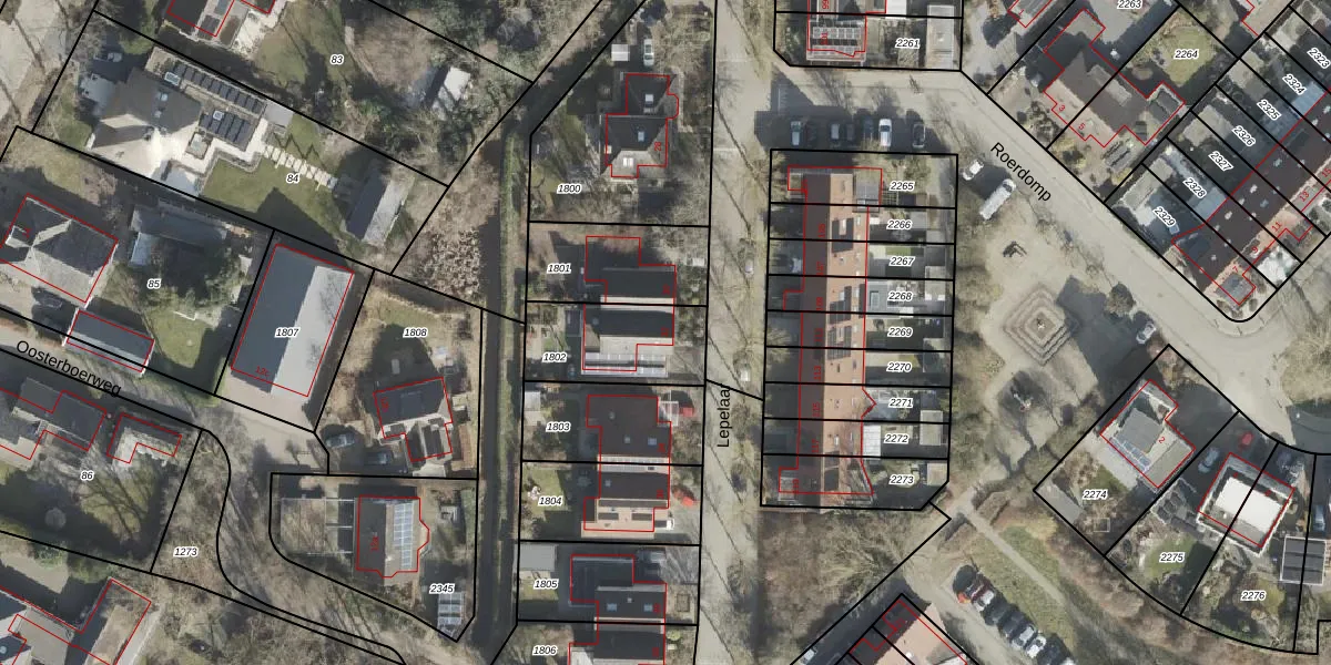 Gebruik de zoekbalk of klik op een perceel voor informatie over de adressen binnen dit perceel.