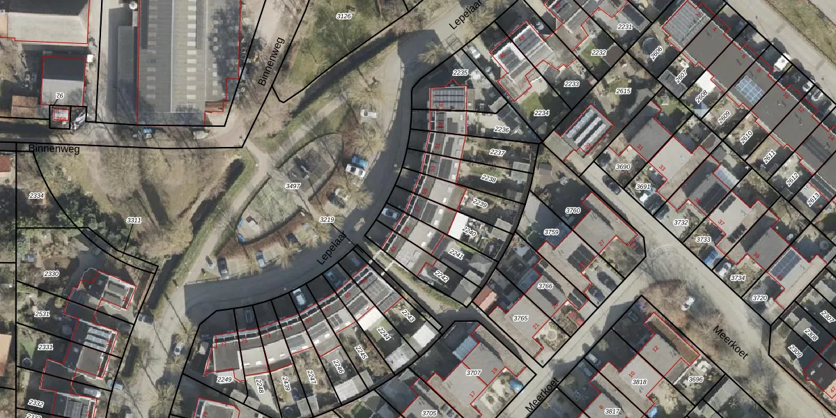 Gebruik de zoekbalk of klik op een perceel voor informatie over de adressen binnen dit perceel.
