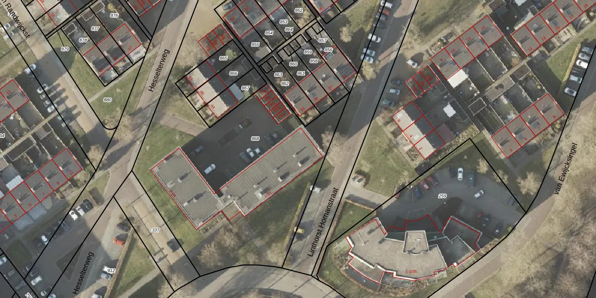 Het perceel waarop Linthorst Homanstraat 31 staat heeft een oppervlakte van 3597 m². Dit is een zeer groot perceel. De perceeloppervlakte wordt geregistreerd door het Kadaster. Gedetailleerde informatie over de maten van dit perceel kunt u vinden in het rapport Kadastrale kaart met maatvoering van Linthorst Homanstraat 31.