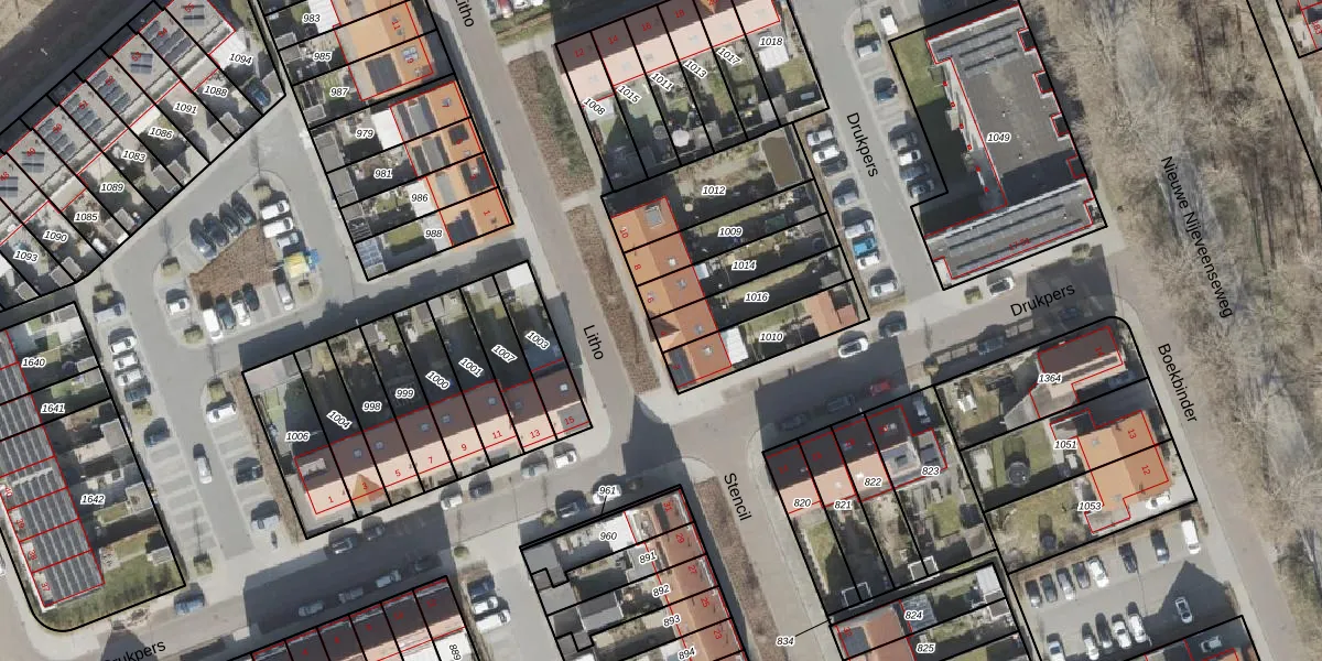 Gebruik de zoekbalk of klik op een perceel voor informatie over de adressen binnen dit perceel.