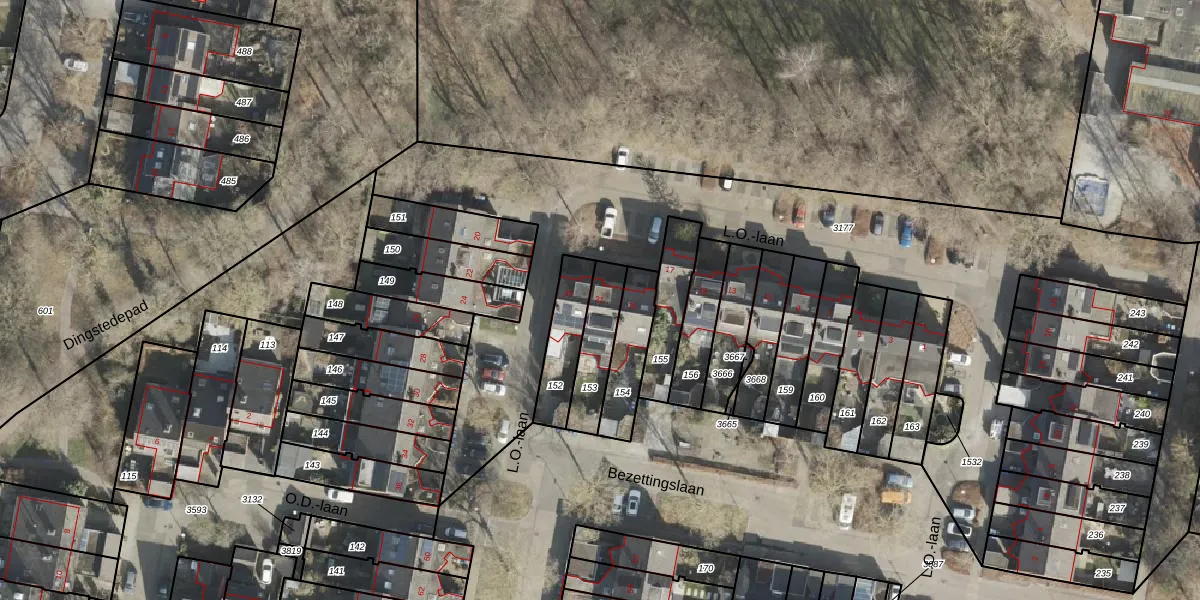 Het perceel waarop L.O.-laan 21 staat heeft een oppervlakte van 155 m². Dit is een middelgroot perceel. De perceeloppervlakte wordt geregistreerd door het Kadaster. Gedetailleerde informatie over de maten van dit perceel kunt u vinden in het rapport Kadastrale kaart met maatvoering van L.O.-laan 21.