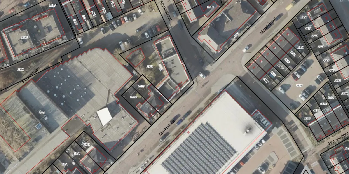 Het perceel waarop Marktstraat 33-2 staat heeft een oppervlakte van 885 m². Dit is een groot perceel. De perceeloppervlakte wordt geregistreerd door het Kadaster. Gedetailleerde informatie over de maten van dit perceel kunt u vinden in het rapport Kadastrale kaart met maatvoering van Marktstraat 33-2.