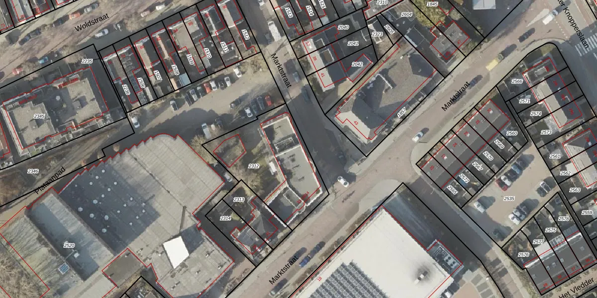 Het perceel waarop Marktstraat 33-4 staat heeft een oppervlakte van 885 m². Dit is een groot perceel. De perceeloppervlakte wordt geregistreerd door het Kadaster. Gedetailleerde informatie over de maten van dit perceel kunt u vinden in het rapport Kadastrale kaart met maatvoering van Marktstraat 33-4.
