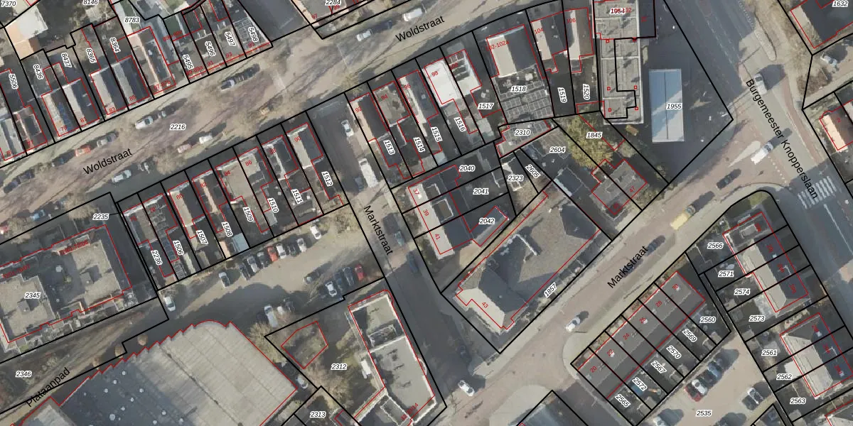 Het perceel waarop Marktstraat 39 staat heeft een oppervlakte van 157 m². Dit is een middelgroot perceel. De perceeloppervlakte wordt geregistreerd door het Kadaster. Gedetailleerde informatie over de maten van dit perceel kunt u vinden in het rapport Kadastrale kaart met maatvoering van Marktstraat 39.