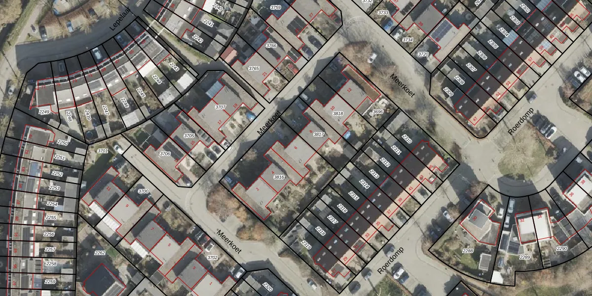 Het perceel waarop Meerkoet 6 staat heeft een oppervlakte van 821 m². Dit is een groot perceel. De perceeloppervlakte wordt geregistreerd door het Kadaster. Gedetailleerde informatie over de maten van dit perceel kunt u vinden in het rapport Kadastrale kaart met maatvoering van Meerkoet 6.