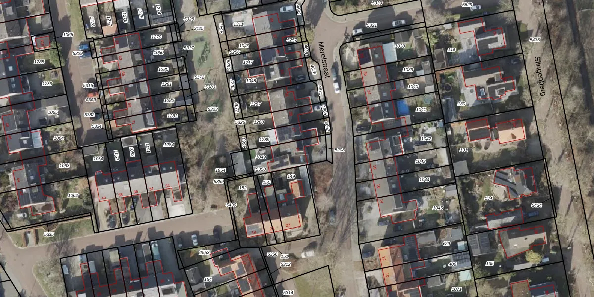 Gebruik de zoekbalk of klik op een perceel voor informatie over de adressen binnen dit perceel.