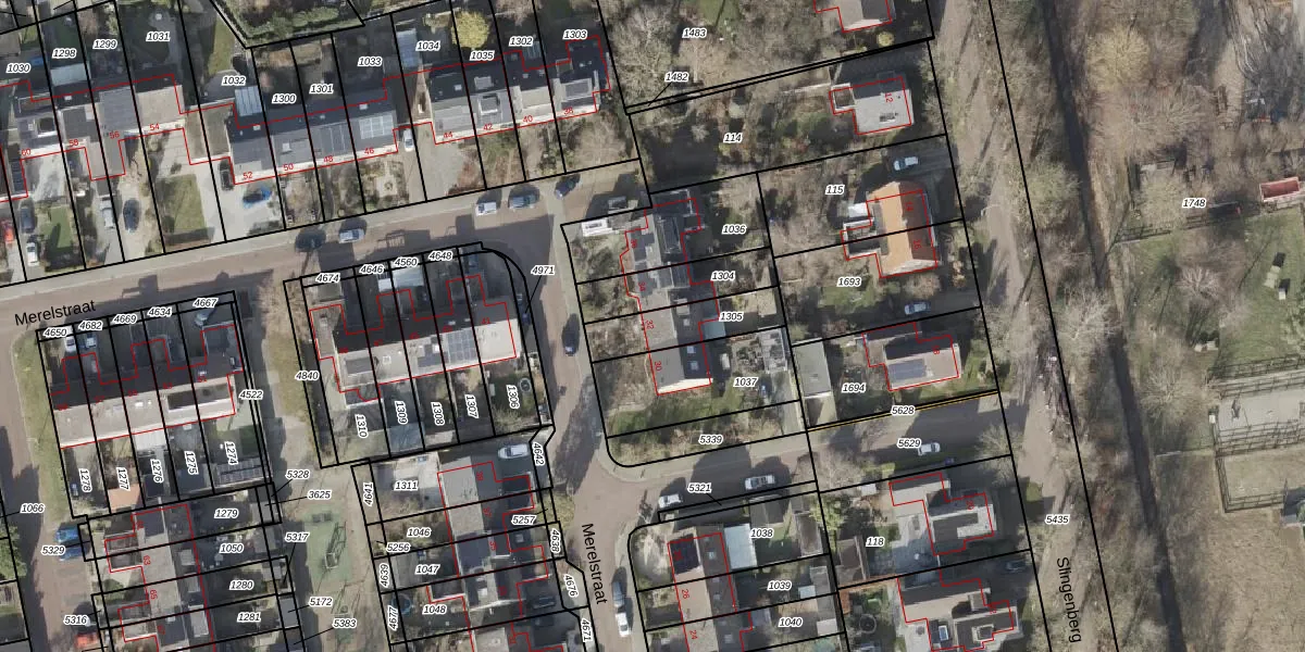 Het perceel waarop Merelstraat 32 staat heeft een oppervlakte van 189 m². Dit is een middelgroot perceel. De perceeloppervlakte wordt geregistreerd door het Kadaster. Gedetailleerde informatie over de maten van dit perceel kunt u vinden in het rapport Kadastrale kaart met maatvoering van Merelstraat 32.