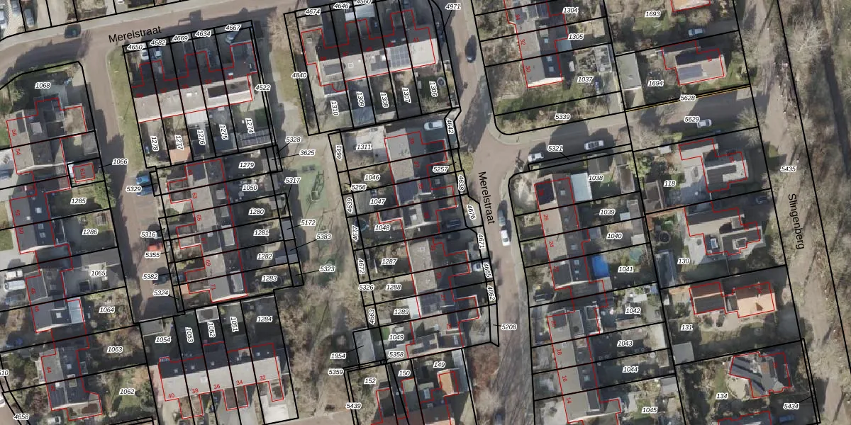 Het perceel waarop Merelstraat 33 staat heeft een oppervlakte van 196 m². Dit is een middelgroot perceel. De perceeloppervlakte wordt geregistreerd door het Kadaster. Gedetailleerde informatie over de maten van dit perceel kunt u vinden in het rapport Kadastrale kaart met maatvoering van Merelstraat 33.