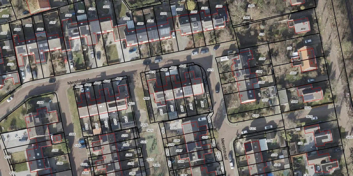 Het perceel waarop Merelstraat 45 staat heeft een oppervlakte van 153 m². Dit is een middelgroot perceel. De perceeloppervlakte wordt geregistreerd door het Kadaster. Gedetailleerde informatie over de maten van dit perceel kunt u vinden in het rapport Kadastrale kaart met maatvoering van Merelstraat 45.
