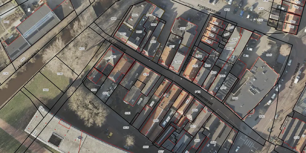 Het perceel waarop Molenstraat 43 staat heeft een oppervlakte van 310 m². Dit is een groot perceel. De perceeloppervlakte wordt geregistreerd door het Kadaster. Gedetailleerde informatie over de maten van dit perceel kunt u vinden in het rapport Kadastrale kaart met maatvoering van Molenstraat 43.