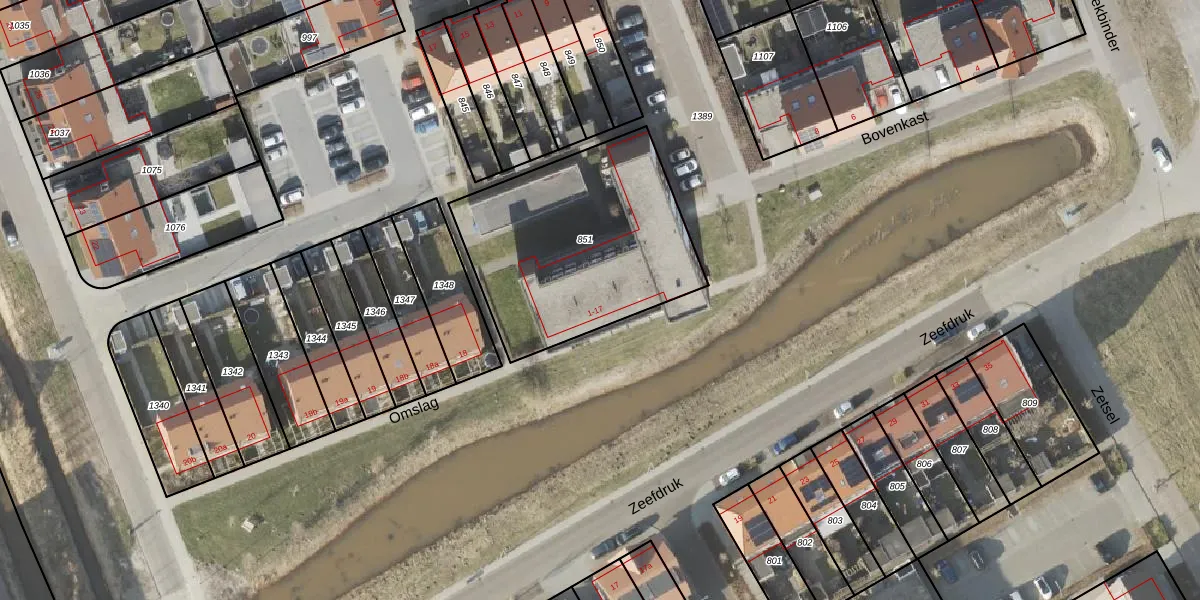 Het perceel waarop Omslag 14 staat heeft een oppervlakte van 1011 m². Dit is een zeer groot perceel. De perceeloppervlakte wordt geregistreerd door het Kadaster. Gedetailleerde informatie over de maten van dit perceel kunt u vinden in het rapport Kadastrale kaart met maatvoering van Omslag 14.