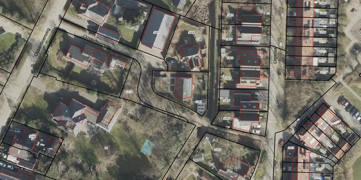 Het perceel waarop Oosterboerweg 12-A staat heeft een oppervlakte van 561 m². Dit is een groot perceel. De perceeloppervlakte wordt geregistreerd door het Kadaster. Gedetailleerde informatie over de maten van dit perceel kunt u vinden in het rapport Kadastrale kaart met maatvoering van Oosterboerweg 12-A.
