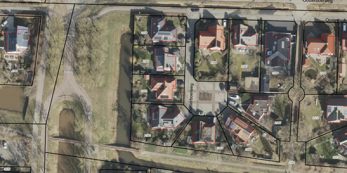 Het perceel waarop Oosterboerweg 60 staat heeft een oppervlakte van 509 m². Dit is een groot perceel. De perceeloppervlakte wordt geregistreerd door het Kadaster. Gedetailleerde informatie over de maten van dit perceel kunt u vinden in het rapport Kadastrale kaart met maatvoering van Oosterboerweg 60.