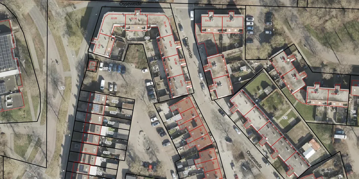 Osseweide 64 is gelegen op kadastraal perceel MPL00M616. Deze kadastrale aanduiding is uniek en wordt gebruikt door het Kadaster om eigendomsrechten en andere zakelijke rechten vast te leggen. Het perceel maakt onderdeel uit van de kadastrale gemeente Meppel.