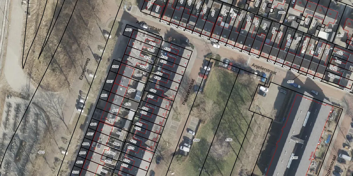 Gebruik de zoekbalk of klik op een perceel voor informatie over de adressen binnen dit perceel.