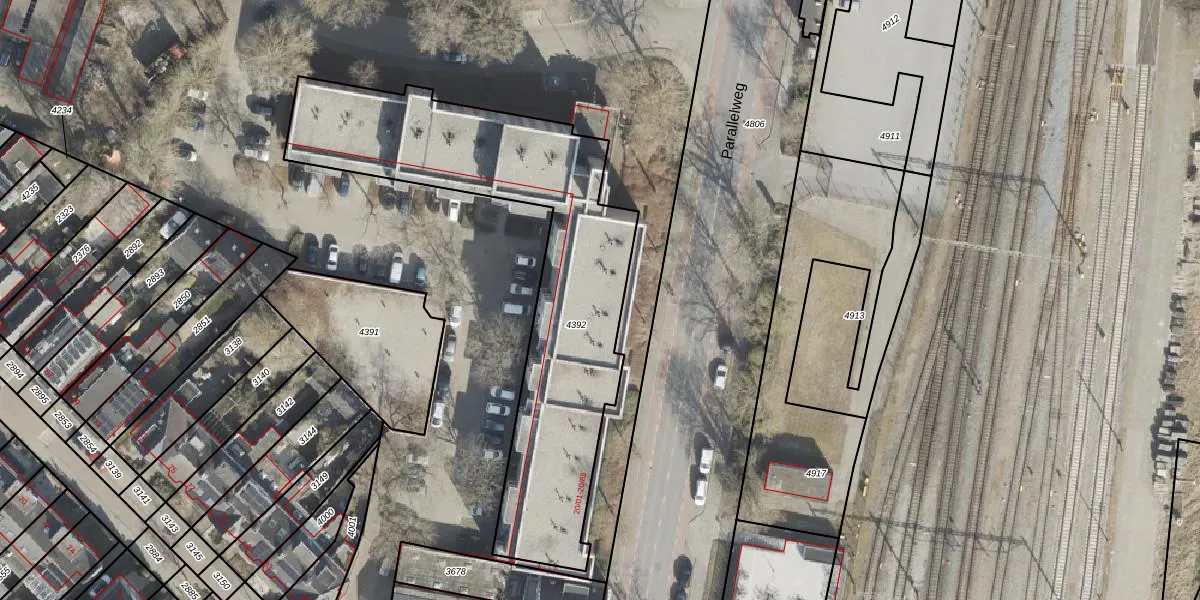 Het perceel waarop Parallelweg 20-27 staat heeft een oppervlakte van 1565 m². Dit is een zeer groot perceel. De perceeloppervlakte wordt geregistreerd door het Kadaster. Gedetailleerde informatie over de maten van dit perceel kunt u vinden in het rapport Kadastrale kaart met maatvoering van Parallelweg 20-27.