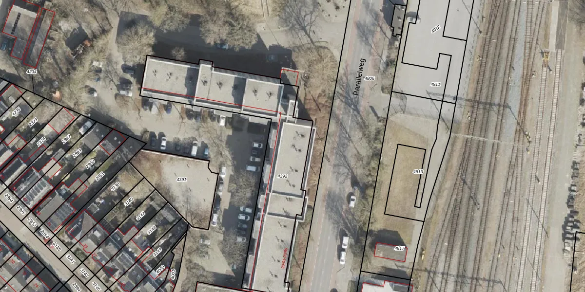 Het perceel waarop Parallelweg 20-47 staat heeft een oppervlakte van 1565 m². Dit is een zeer groot perceel. De perceeloppervlakte wordt geregistreerd door het Kadaster. Gedetailleerde informatie over de maten van dit perceel kunt u vinden in het rapport Kadastrale kaart met maatvoering van Parallelweg 20-47.