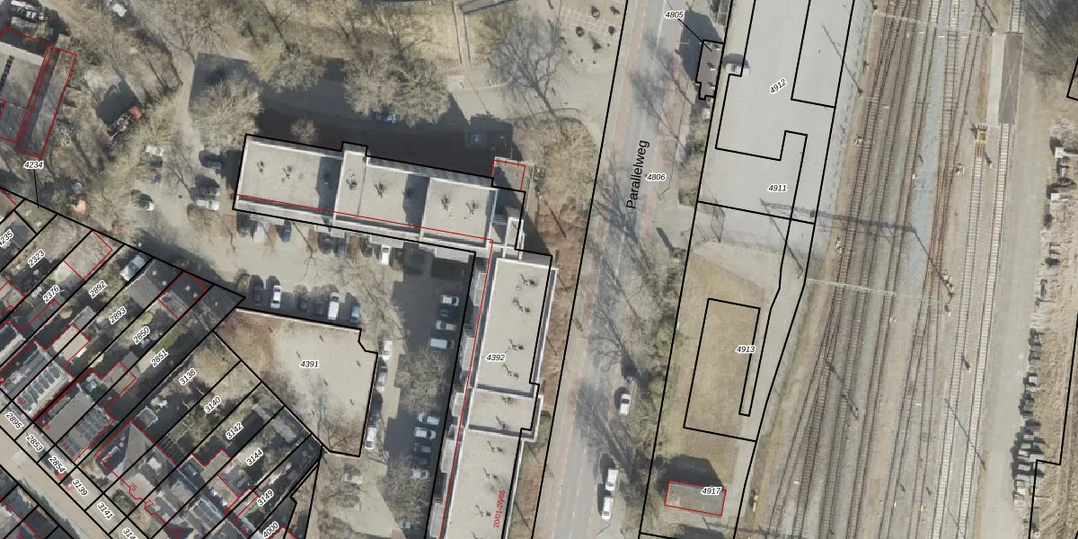 Het perceel waarop Parallelweg 20-01 staat heeft een oppervlakte van 1565 m². Dit is een zeer groot perceel. De perceeloppervlakte wordt geregistreerd door het Kadaster. Gedetailleerde informatie over de maten van dit perceel kunt u vinden in het rapport Kadastrale kaart met maatvoering van Parallelweg 20-01.
