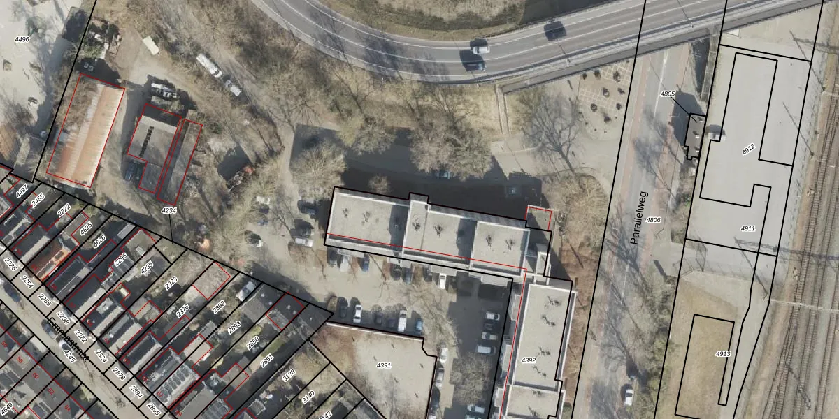 Het perceel waarop Parallelweg 20-10 staat heeft een oppervlakte van 1565 m². Dit is een zeer groot perceel. De perceeloppervlakte wordt geregistreerd door het Kadaster. Gedetailleerde informatie over de maten van dit perceel kunt u vinden in het rapport Kadastrale kaart met maatvoering van Parallelweg 20-10.