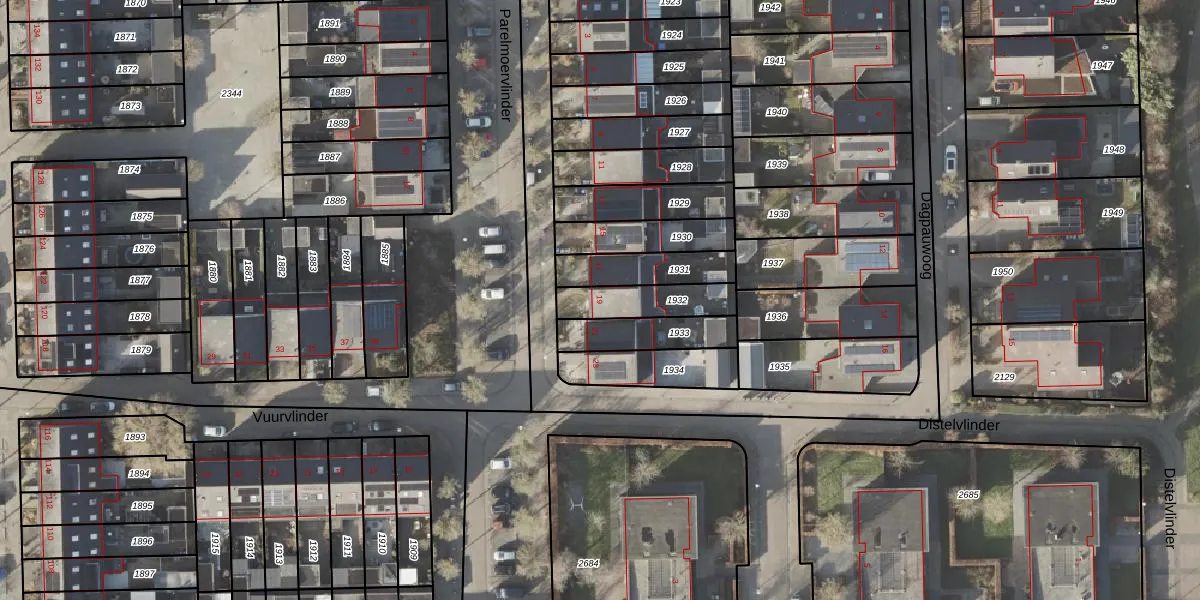 Het perceel waarop Parelmoervlinder 19 staat heeft een oppervlakte van 162 m². Dit is een middelgroot perceel. De perceeloppervlakte wordt geregistreerd door het Kadaster. Gedetailleerde informatie over de maten van dit perceel kunt u vinden in het rapport Kadastrale kaart met maatvoering van Parelmoervlinder 19.