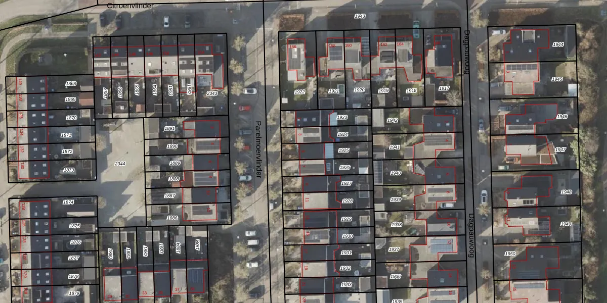 Het perceel waarop Parelmoervlinder 5 staat heeft een oppervlakte van 162 m². Dit is een middelgroot perceel. De perceeloppervlakte wordt geregistreerd door het Kadaster. Gedetailleerde informatie over de maten van dit perceel kunt u vinden in het rapport Kadastrale kaart met maatvoering van Parelmoervlinder 5.