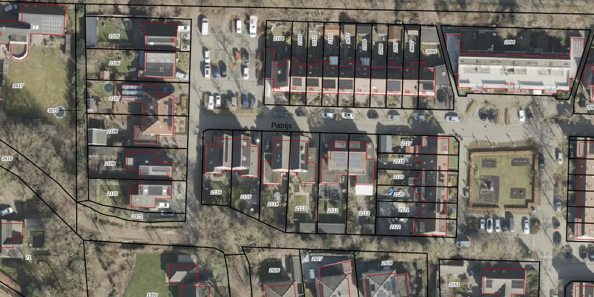 Het perceel waarop Patrijs 17 staat heeft een oppervlakte van 345 m². Dit is een groot perceel. De perceeloppervlakte wordt geregistreerd door het Kadaster. Gedetailleerde informatie over de maten van dit perceel kunt u vinden in het rapport Kadastrale kaart met maatvoering van Patrijs 17.