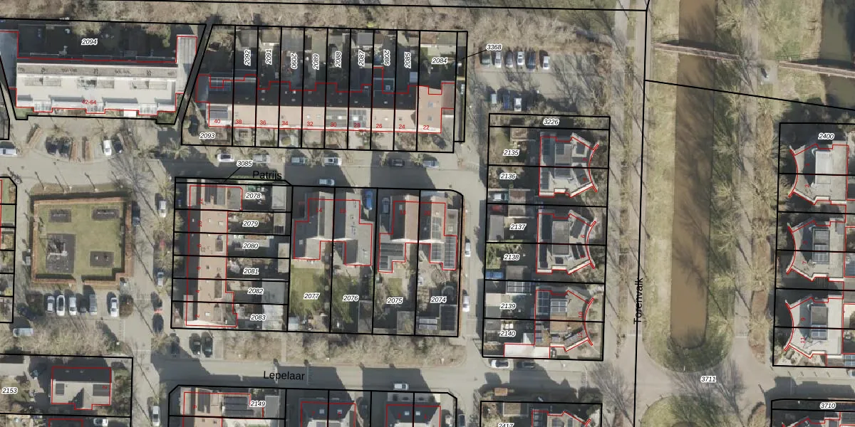 Het perceel waarop Patrijs 20 staat heeft een oppervlakte van 342 m². Dit is een groot perceel. De perceeloppervlakte wordt geregistreerd door het Kadaster. Gedetailleerde informatie over de maten van dit perceel kunt u vinden in het rapport Kadastrale kaart met maatvoering van Patrijs 20.
