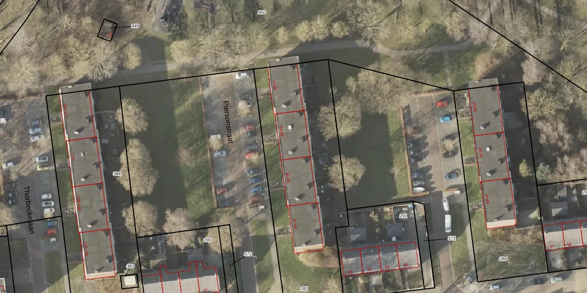 Het perceel waarop Piersonstraat 66 staat heeft een oppervlakte van 1988 m². Dit is een zeer groot perceel. De perceeloppervlakte wordt geregistreerd door het Kadaster. Gedetailleerde informatie over de maten van dit perceel kunt u vinden in het rapport Kadastrale kaart met maatvoering van Piersonstraat 66.
