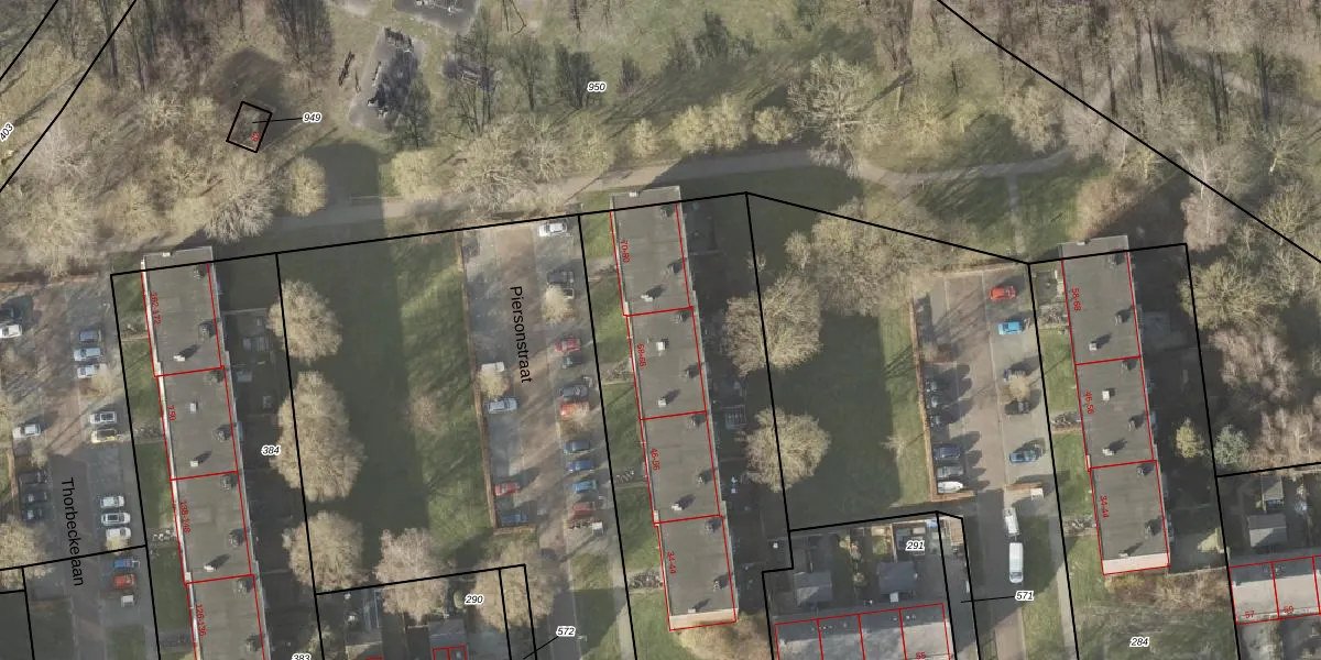 Het perceel waarop Piersonstraat 68 staat heeft een oppervlakte van 1988 m². Dit is een zeer groot perceel. De perceeloppervlakte wordt geregistreerd door het Kadaster. Gedetailleerde informatie over de maten van dit perceel kunt u vinden in het rapport Kadastrale kaart met maatvoering van Piersonstraat 68.