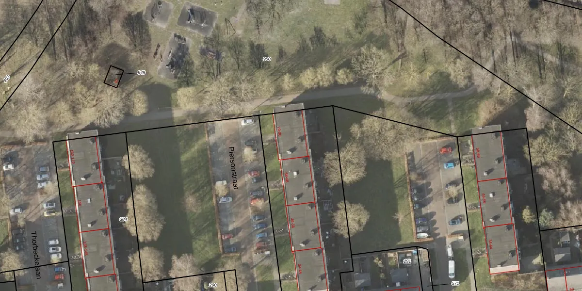 Het perceel waarop Piersonstraat 78 staat heeft een oppervlakte van 1988 m². Dit is een zeer groot perceel. De perceeloppervlakte wordt geregistreerd door het Kadaster. Gedetailleerde informatie over de maten van dit perceel kunt u vinden in het rapport Kadastrale kaart met maatvoering van Piersonstraat 78.