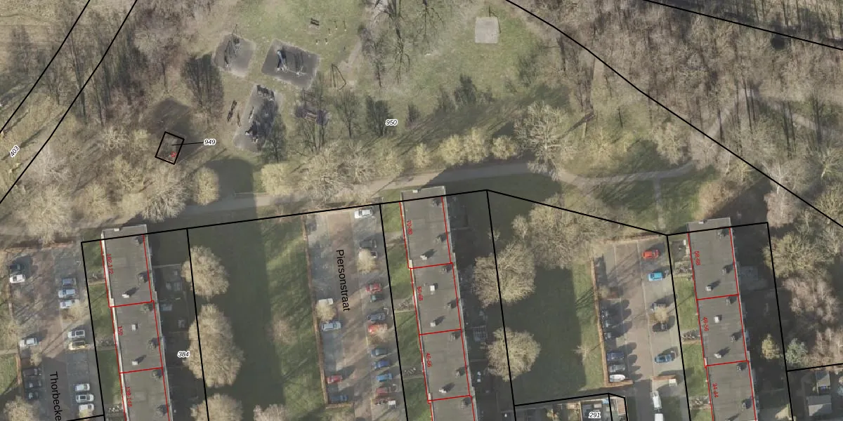 Het perceel waarop Piersonstraat 80 staat heeft een oppervlakte van 1988 m². Dit is een zeer groot perceel. De perceeloppervlakte wordt geregistreerd door het Kadaster. Gedetailleerde informatie over de maten van dit perceel kunt u vinden in het rapport Kadastrale kaart met maatvoering van Piersonstraat 80.