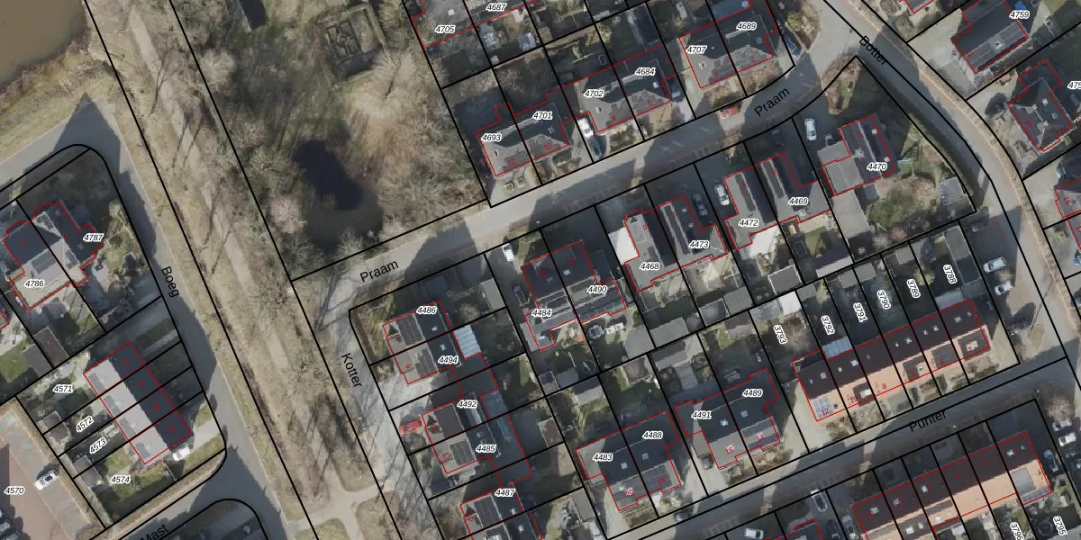 Het perceel waarop Praam 13 staat heeft een oppervlakte van 327 m². Dit is een groot perceel. De perceeloppervlakte wordt geregistreerd door het Kadaster. Gedetailleerde informatie over de maten van dit perceel kunt u vinden in het rapport Kadastrale kaart met maatvoering van Praam 13.