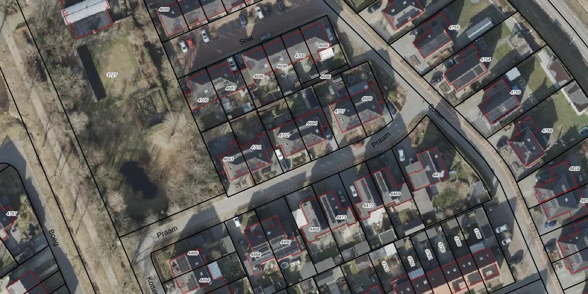 Het perceel waarop Praam 8 staat heeft een oppervlakte van 245 m². Dit is een middelgroot perceel. De perceeloppervlakte wordt geregistreerd door het Kadaster. Gedetailleerde informatie over de maten van dit perceel kunt u vinden in het rapport Kadastrale kaart met maatvoering van Praam 8.